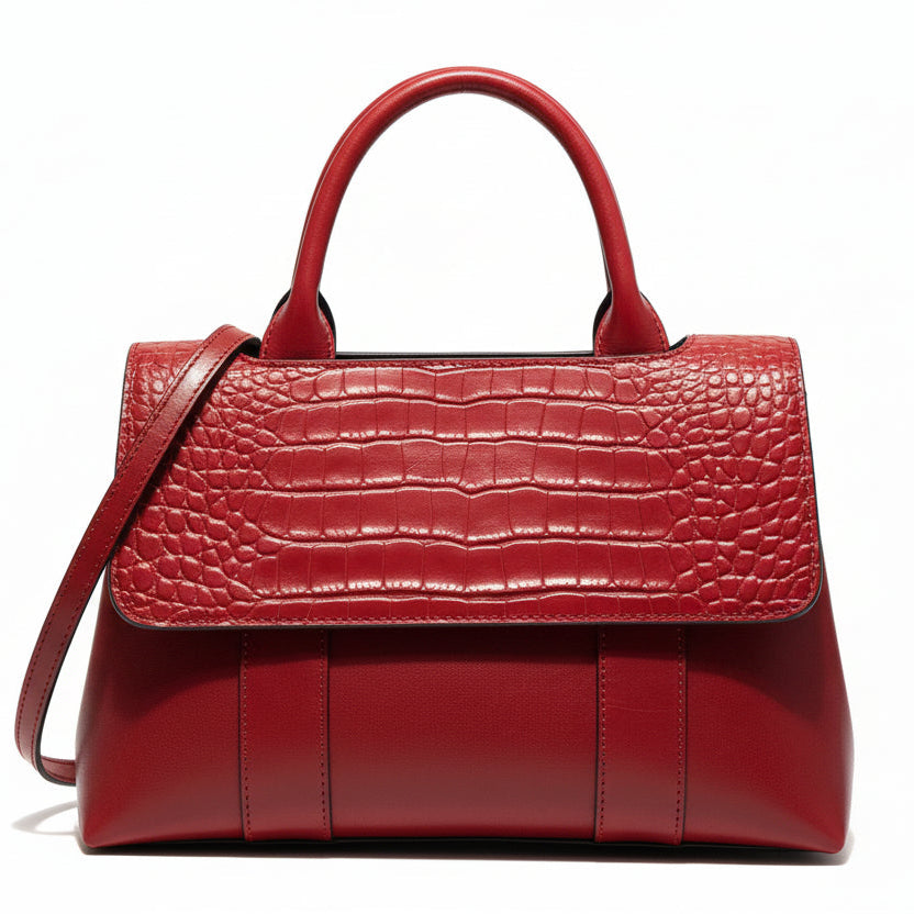 The refined croc-textured flap adds a polished touch, while the spacious, well-organized interior holds your daily essentials with ease. Wear it comfortably as a crossbody or carry it by hand for versatile sophistication that transitions beautifully from busy days to relaxed evenings.